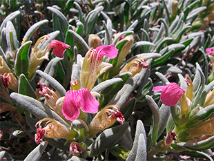 Стебли мохнатые, без ползучих побегов, высотой 10–50 см, диаметром 3–5 мм, светлобурые, иногда красноватые, редко лишь снизу беловатые. Прикорневые листья шершавые, коротко-черешковые, обратнояйцевидные; стеблевые листья — яйцевидные, обыкновенно беловатые, верхние — немного длиннее цветов. Светло-розовые цветы одиночные, пазушные. Чашечка колокольчатая, зубчатая; зубцы ее вдвое длиннее трубочки. Венчик с волосистым кольцом в нижней части трубочки, с короткой выемчатой или двухраздельной верхней и трехлопастной нижней губой, средняя лопасть которой круглая, обратносердцевидная. Тычинок четыре, выдаются над верхней губой; гнезда пыльников расходящиеся, потом сливающиеся. Завязь четырехлопастная, четырехгнездная, с одной семяпочкой в каждом гнезде, при основании с подпестичным диском и срединным столбиком, заканчивающимся 2-раздельным рыльцем. Плод — четыре морщинистых, продолговатых орешка коричневого цвета.